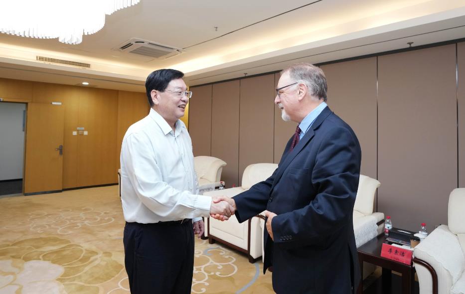 湯普森介紹了自己此行到河南尤其是參觀河南航投集團(tuán)航空制造產(chǎn)業(yè)園、河南航投航空培訓(xùn)中心的情形。他表示,盧森堡貨航是當(dāng)?shù)胤浅V匾钠髽I(yè),河南航投收購盧森堡貨航35%的股權(quán)在當(dāng)?shù)厥寝Z動新聞,《編年史》自那時(shí)起就一直關(guān)注著雙方的合作。湯普森見證了鄭盧“空中絲綢之路”貨運(yùn)量不斷增長、客運(yùn)航線開通和文物雙向交流等重要突破,也曾參加了盧森堡首屆龍舟節(jié)并樂見河南航投和盧森堡貨航同時(shí)組隊(duì)參賽。隨后,湯普森就今年6月中豫航空集團(tuán)在盧森堡發(fā)債、與當(dāng)?shù)仄髽I(yè)簽約等,詳細(xì)了解了今后雙方的合作思路。湯普森希望中豫航空集團(tuán)與盧森堡當(dāng)?shù)仄髽I(yè)的合作不斷取得新成效,并通過體育文化交流等增進(jìn)兩地友誼。談及此次來豫,湯普森很開心,直言自己此行收獲頗豐,不僅了解了河南厚重的歷史文化底蘊(yùn),也在行程中感受到河南的開放和包容,將把所見所聞所感帶回去,講好豫盧共建“空中絲綢之路”的友好故事。