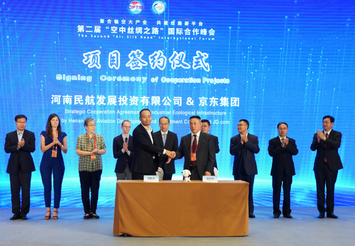 在隨后的成果發(fā)布環(huán)節(jié),河南航投總經(jīng)理、黨委副書記、副董事長劉建葆代表公司分別與中航通用飛機(jī)有限公司(以下簡稱航空工業(yè)通飛)、法國Simaero控股公司、中國檢驗(yàn)認(rèn)證(集團(tuán))公司(以下簡稱中檢集團(tuán))、京東集團(tuán)簽署戰(zhàn)略合作協(xié)議。黃強(qiáng)及中外嘉賓代表見簽。趙磊主持發(fā)布圖書《“一帶一路”高質(zhì)量發(fā)展——河南“空中絲綢之路”的生動實(shí)踐》。該書以紀(jì)實(shí)筆觸全方位記錄了河南主動融入“一帶一路”建設(shè),向天尋路,架起一條互利各國交通運(yùn)輸、聚合經(jīng)貿(mào)文化發(fā)展的“空中絲綢之路”,真實(shí)展現(xiàn)出河南打造內(nèi)陸開放新高地、實(shí)現(xiàn)中原更出彩的新局面。